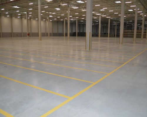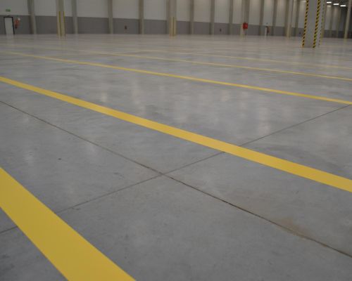 For the company WHEELS Logistics, we carried out extensive marking of approximately 8,000 meters of lines in their new warehouse. Marking was done with PVC tapes and was done over 4 days. In addition to the floors, all columns in the area of the hall were marked.